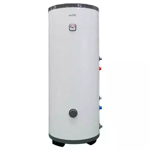 Напольный бойлер косвенного нагрева Uni-fitt STINOX F 150 с баком из нержавеющей стали на 150 литров и возможностью установки электрического ТЭНа, рециркуляцией горячей воды и предохранительным клапаном в комплекте.