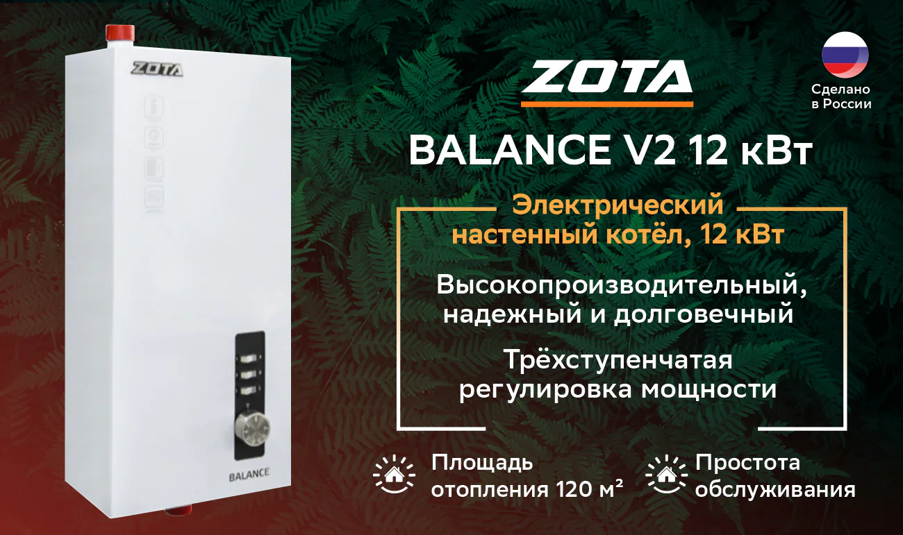 Серия Zota Balance V2 — улучшенная серия электрических котлов ZOTA Balance. Они так же, как и предшественники отличаются экономичностью, простотой и малогабаритностью. Среди преимуществ серии: широкий модельный ряд теплоизолированный корпус, порошковая покраска всех элементов, трёхступенчатая регулировка мощности/температуры нагрева воды от +30 до +90℃;